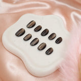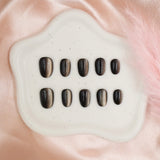 Black Diamond Almond giver et dig et ultimativt løft til de almindelige sorte negle. Mystikken i neglesættet ligger i den halve skjulte guld cat eye, der kun reflekterer med lyset.