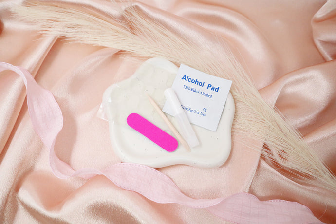 For hvert sæt press-on negle du bestiller fra B-Atelier, får du en lille pakke med alt nødvendigt tilbehør, til påføring og aftagning.